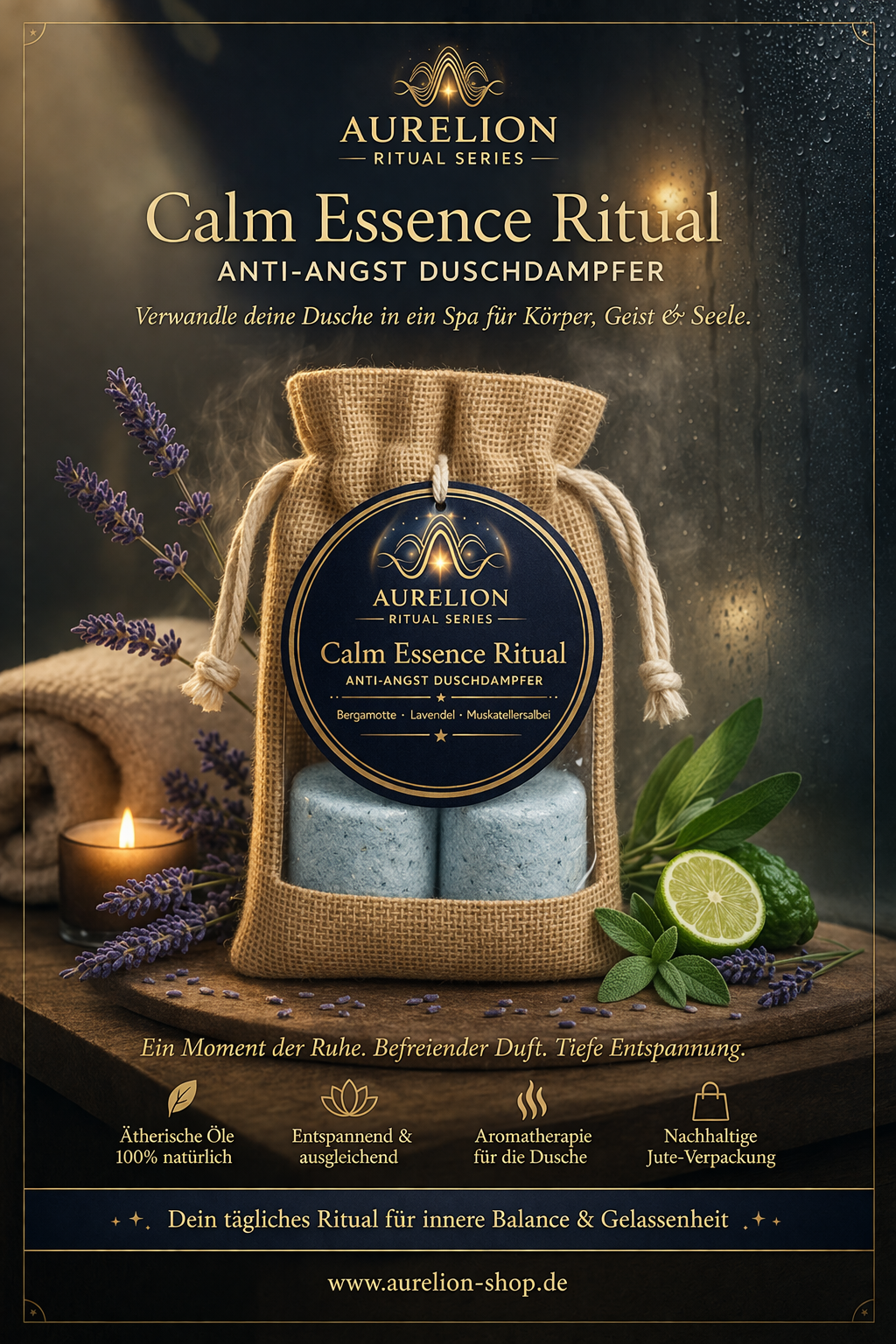 Erlebe einen Moment der inneren Stille – mit dem AURELION Calm Essence Ritual. Dieser fein abgestimmte Aromaduschdampfer verwandelt deine Dusche in einen geschützten Raum der Entspannung, in dem du Stress loslassen und wieder bei dir selbst ankommen kannst.